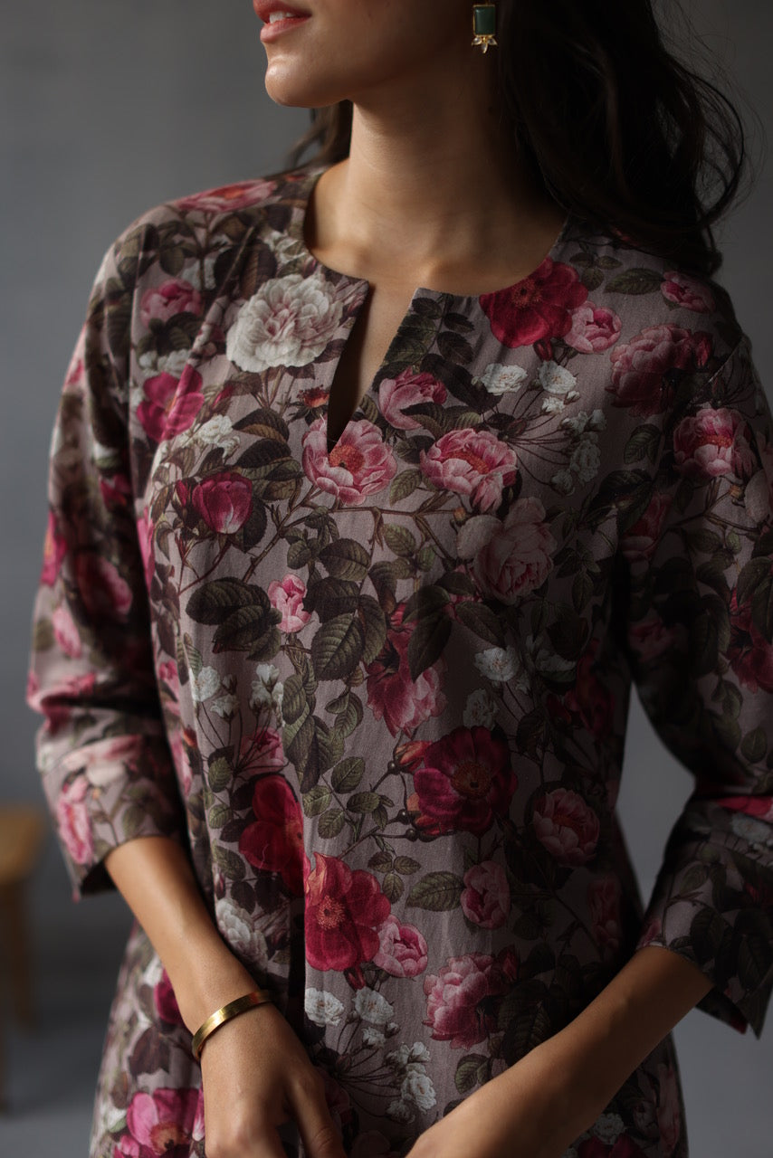 A versatile kurta set perfect for summer or winter, and day or night. The vintage print is an ode to the beautiful british rose. The kurta comes with a pair of comfort fit pants.