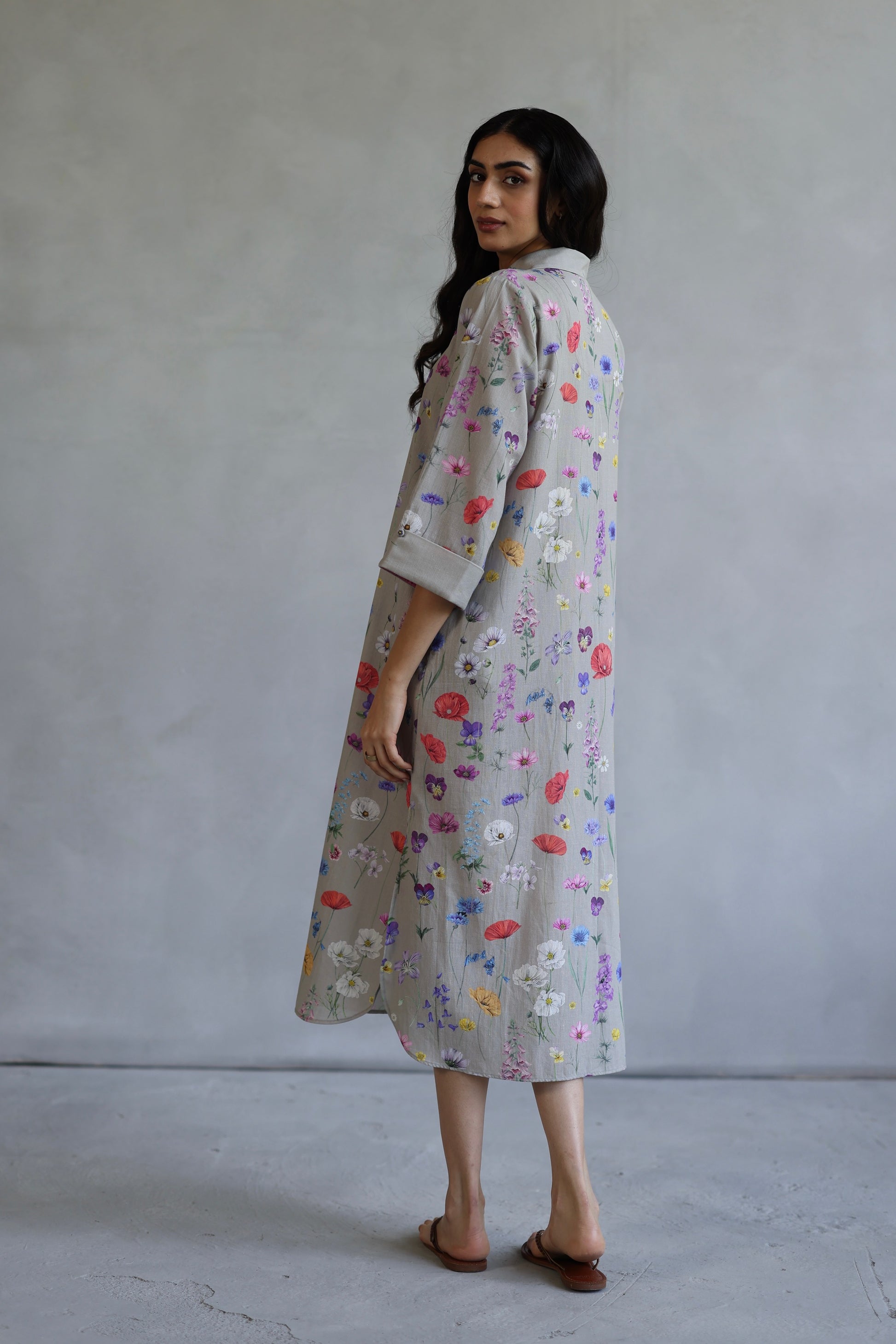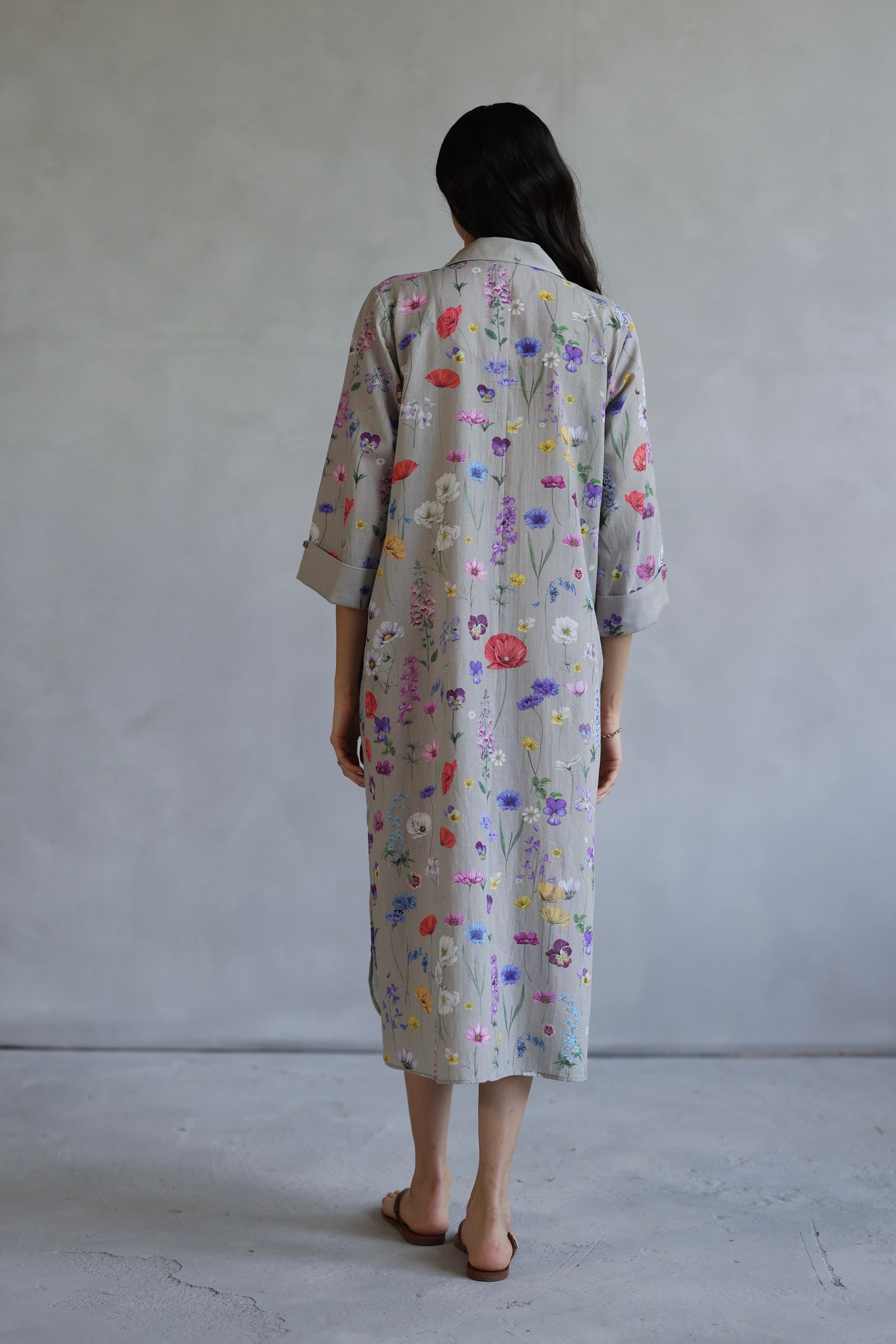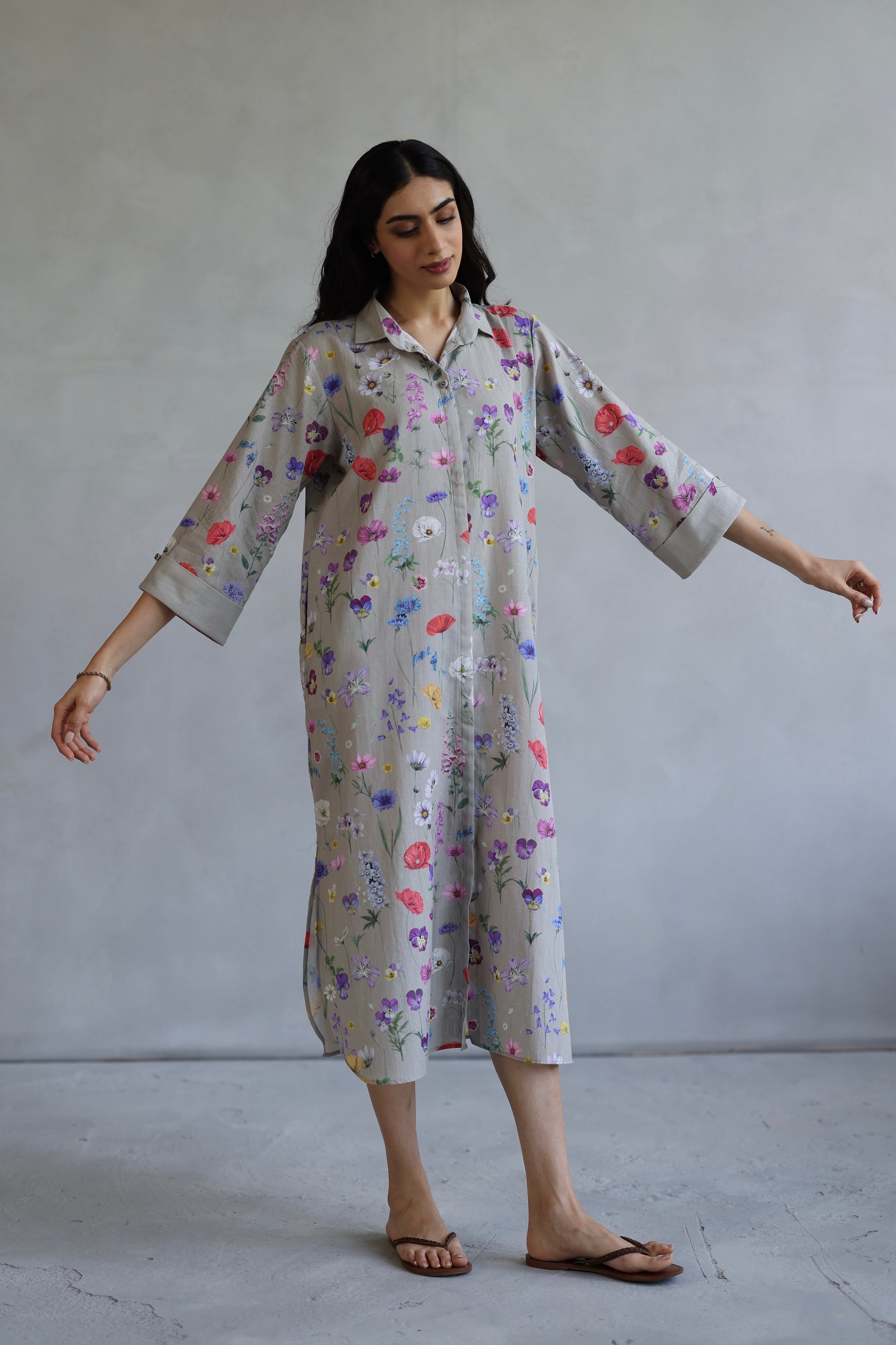 Flowing effortlessly in breathable linen, this cocoa dress is adorned with delicate florals, capturing the beauty of nature in every detail. Handcrafted floral buttons add an artisanal touch, while the relaxed silhouette ensures comfort and grace. Perfect for embracing timeless elegance with ease.
