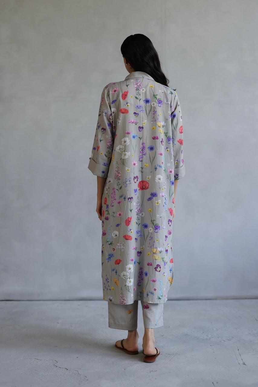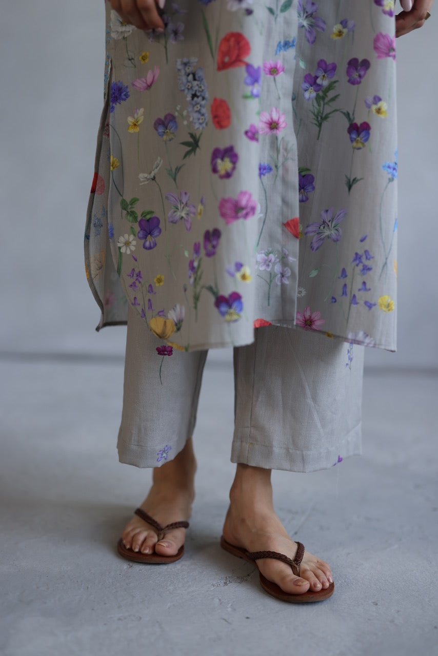 Flowing effortlessly in breathable linen, this cocoa kurta set is adorned with delicate florals, capturing the beauty of nature in every detail. Handcrafted floral buttons add an artisanal touch, while the relaxed pants ensures comfort and grace. Perfect for embracing timeless elegance with ease.