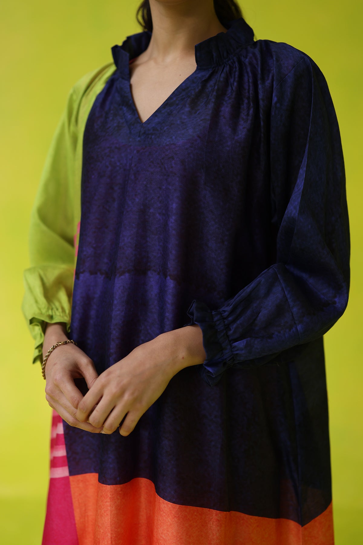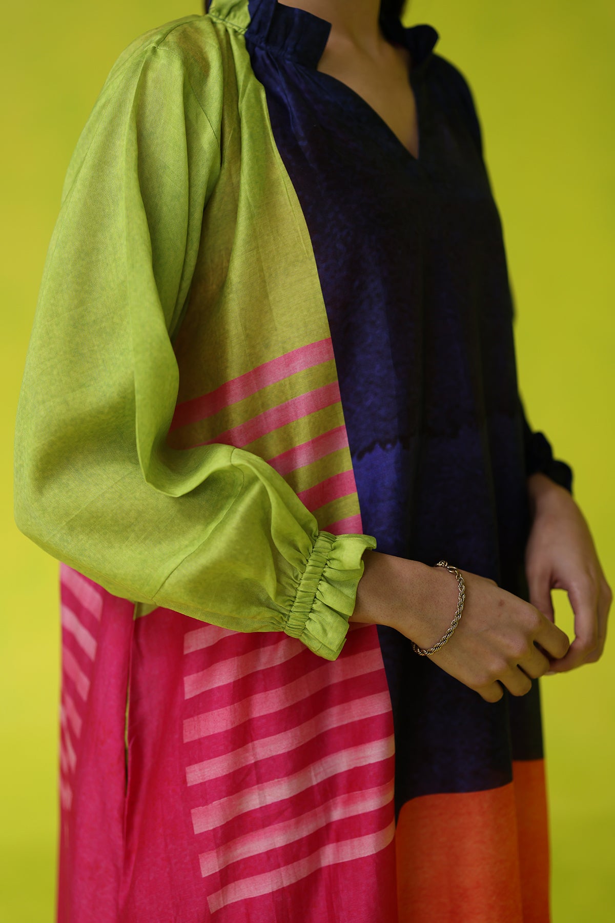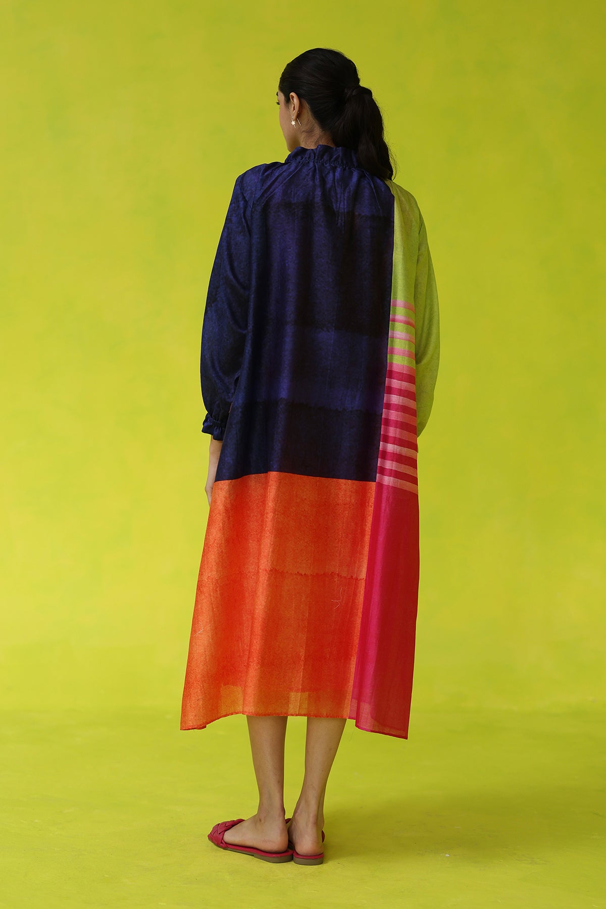 The block party dress brings the energy with vibrant color blocking in navy, orange, and fuchsia cut in a breezy a-line silhouette that moves as freely as you do. Whether you’re dancing through errands or slipping into weekend mode, this one turns heads without trying