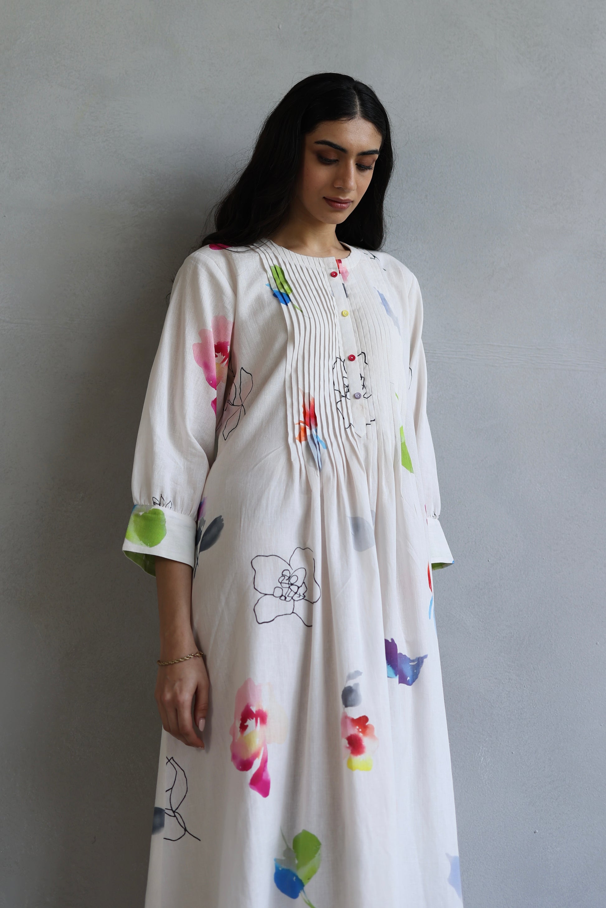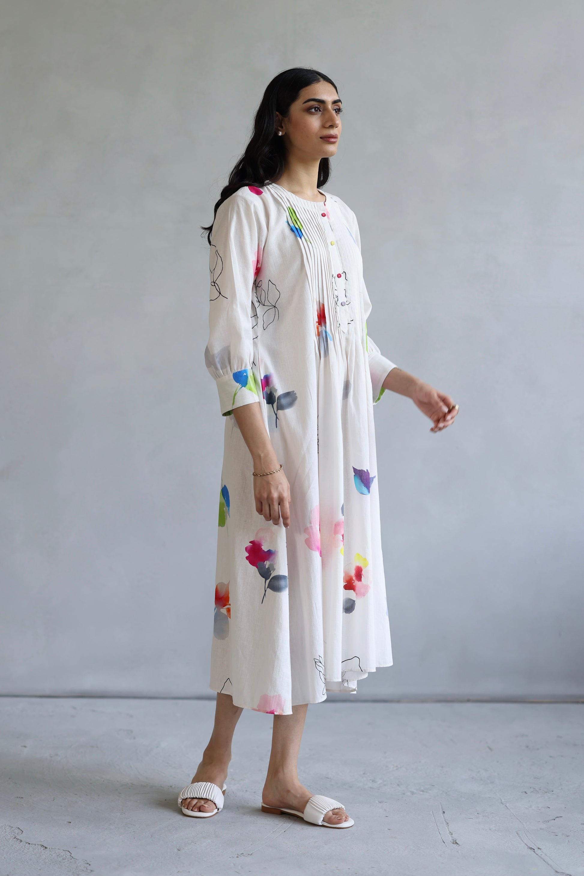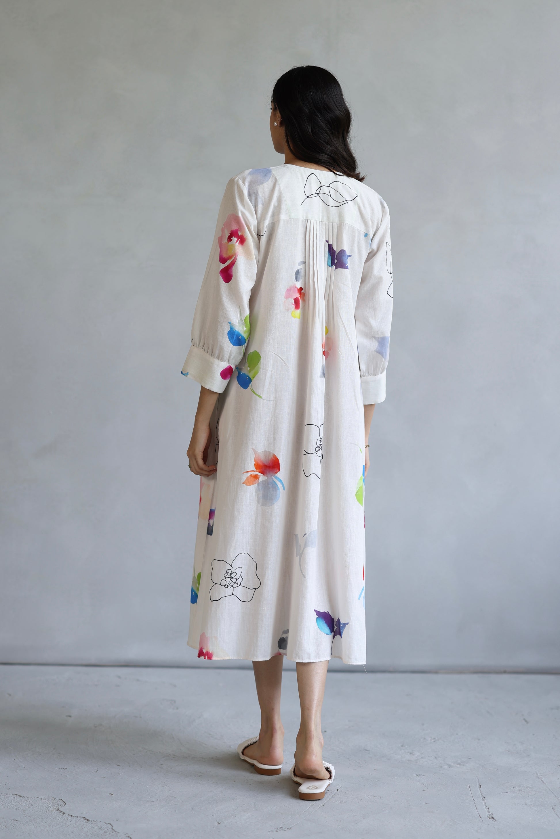 Flowing effortlessly in breathable linen, this cocoa dress is adorned with delicate florals, capturing the beauty of nature in every detail. Handcrafted floral buttons add an artisanal touch, while the relaxed silhouette ensures comfort and grace. Perfect for embracing timeless elegance with ease.