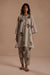 A slate blue linen short kurta set featuring three-fourth sleeves, and all-over floral motifs in contrasting tones. Finished with tassel detailing on the front, this easy silhouette comes with printed Blue salwar, perfect for everyday wear from work to errands.