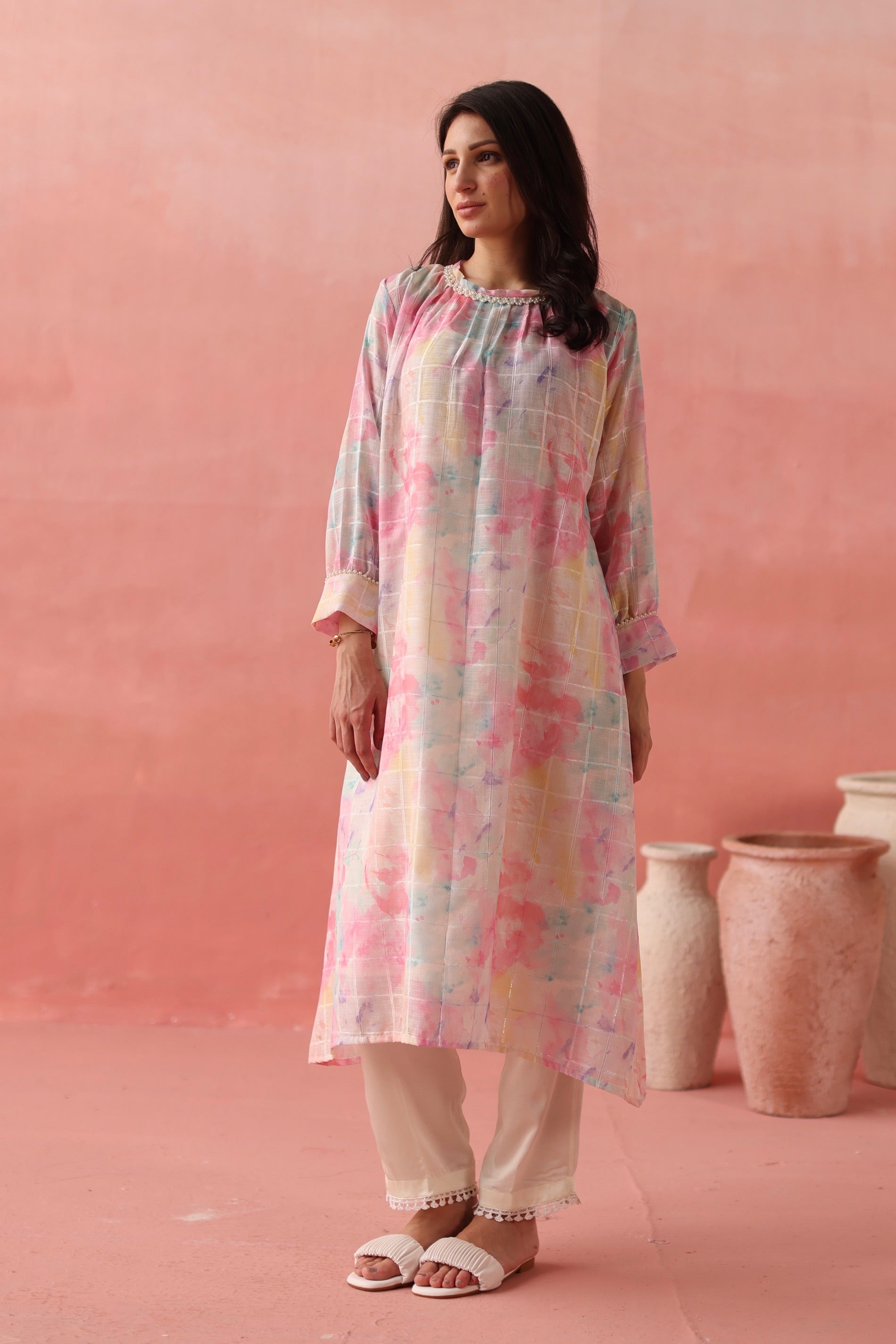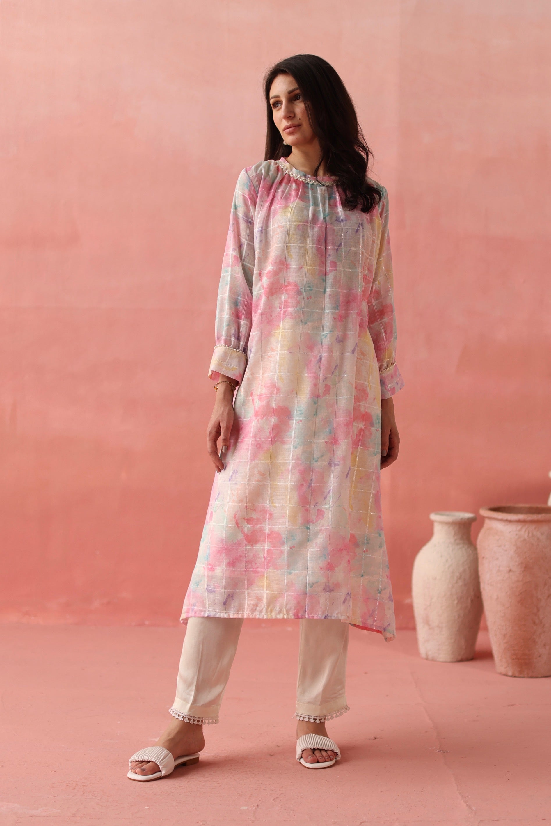 - Kindly choose relaxed measurements for a similar look as shown in the images.
