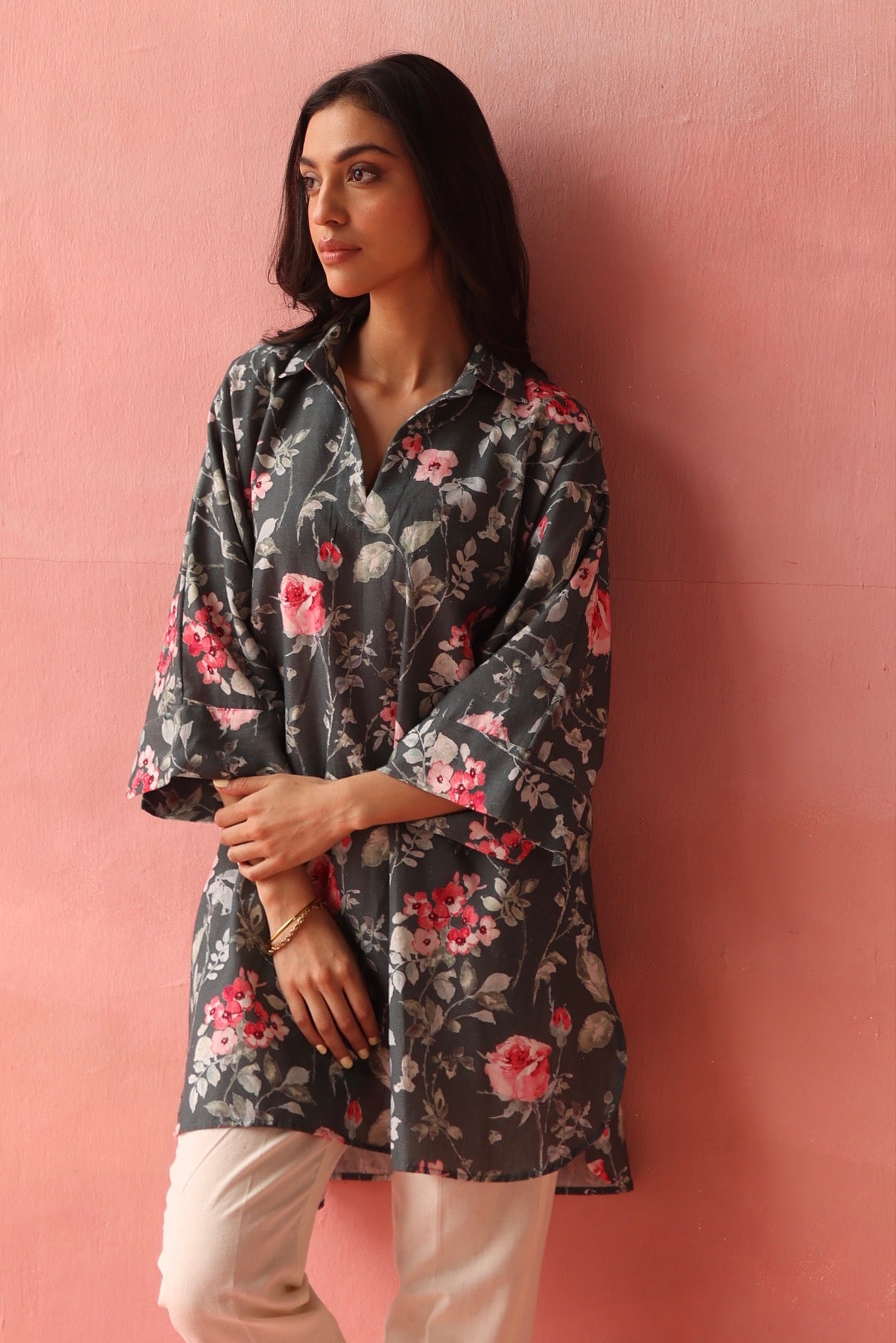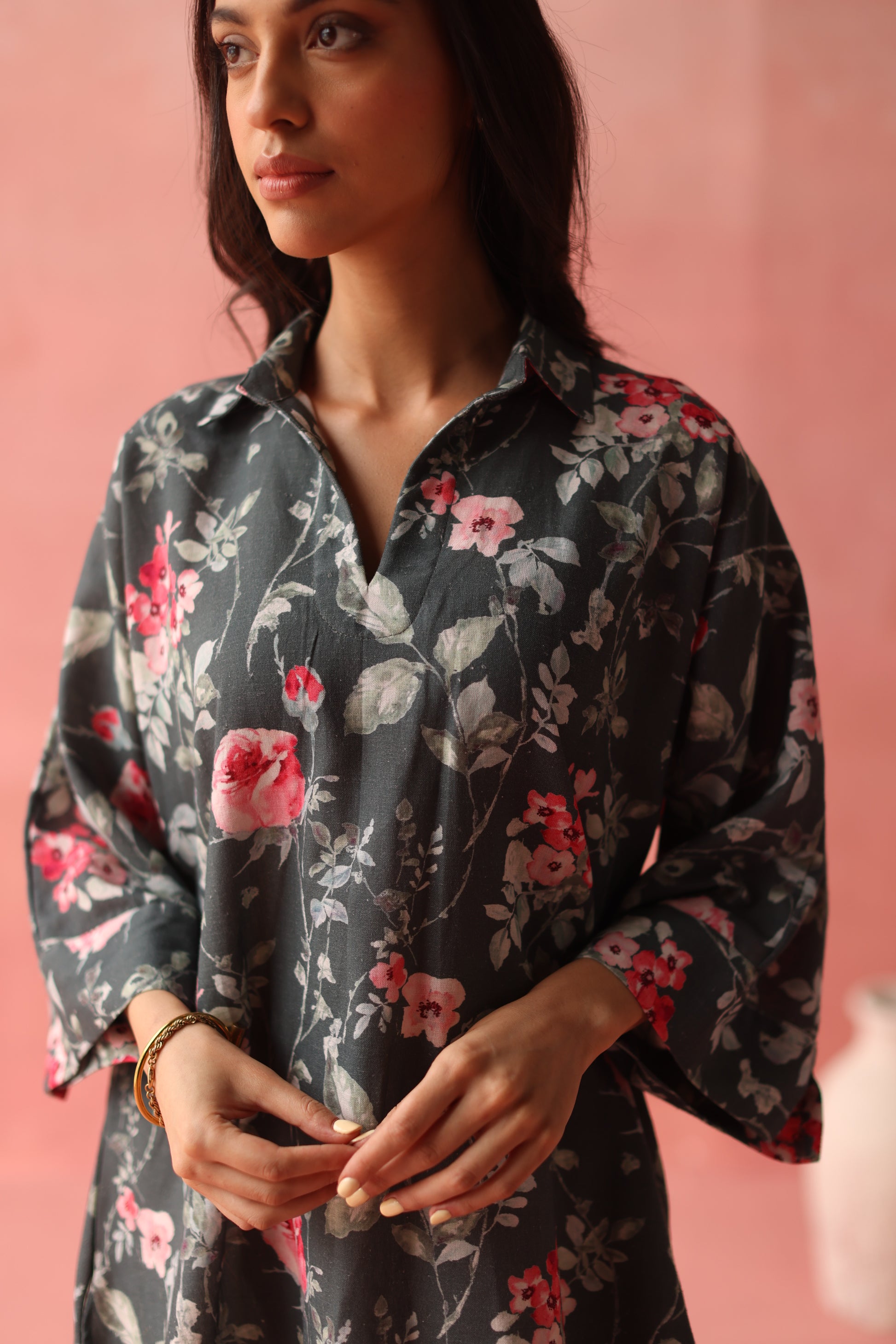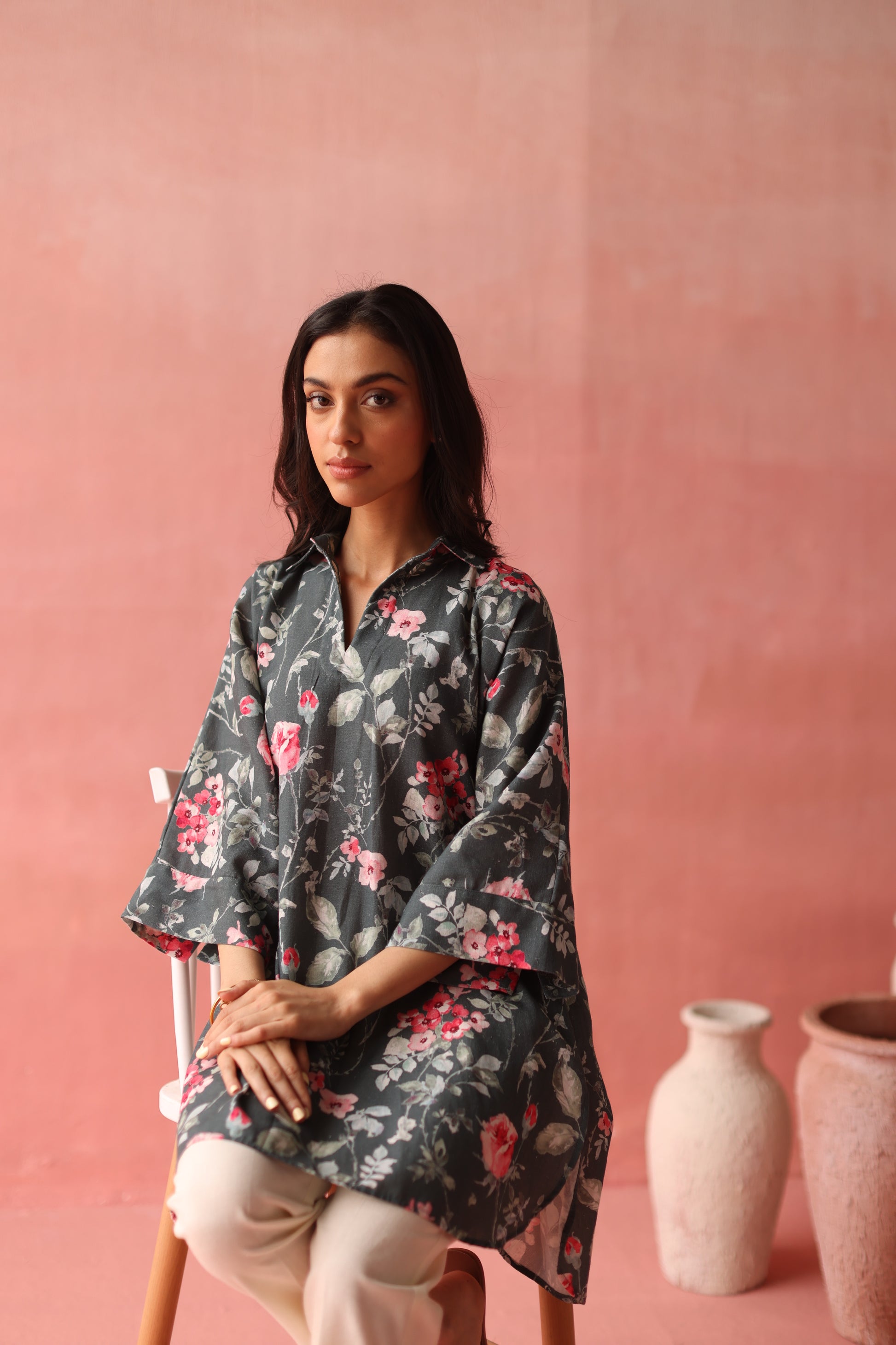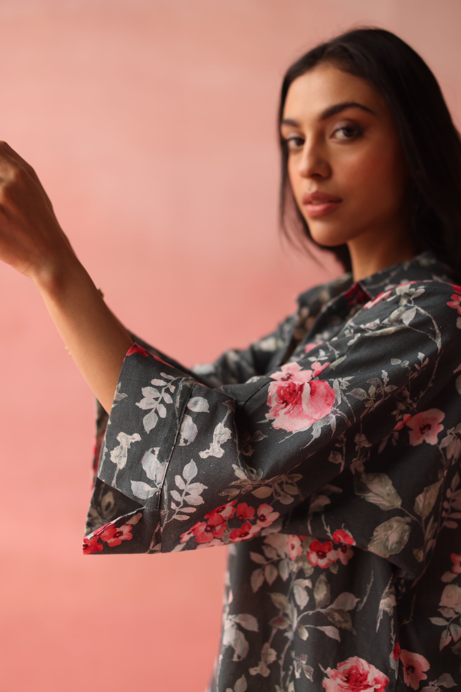 The kairos kaftan is a combination of the classic kaftan silhouette, with loose and flowing cuts with the sleeves and floral prints, along with the comfort of linen fabric, providing both elegance and ease of movement. It can be paired with our easy day pants.