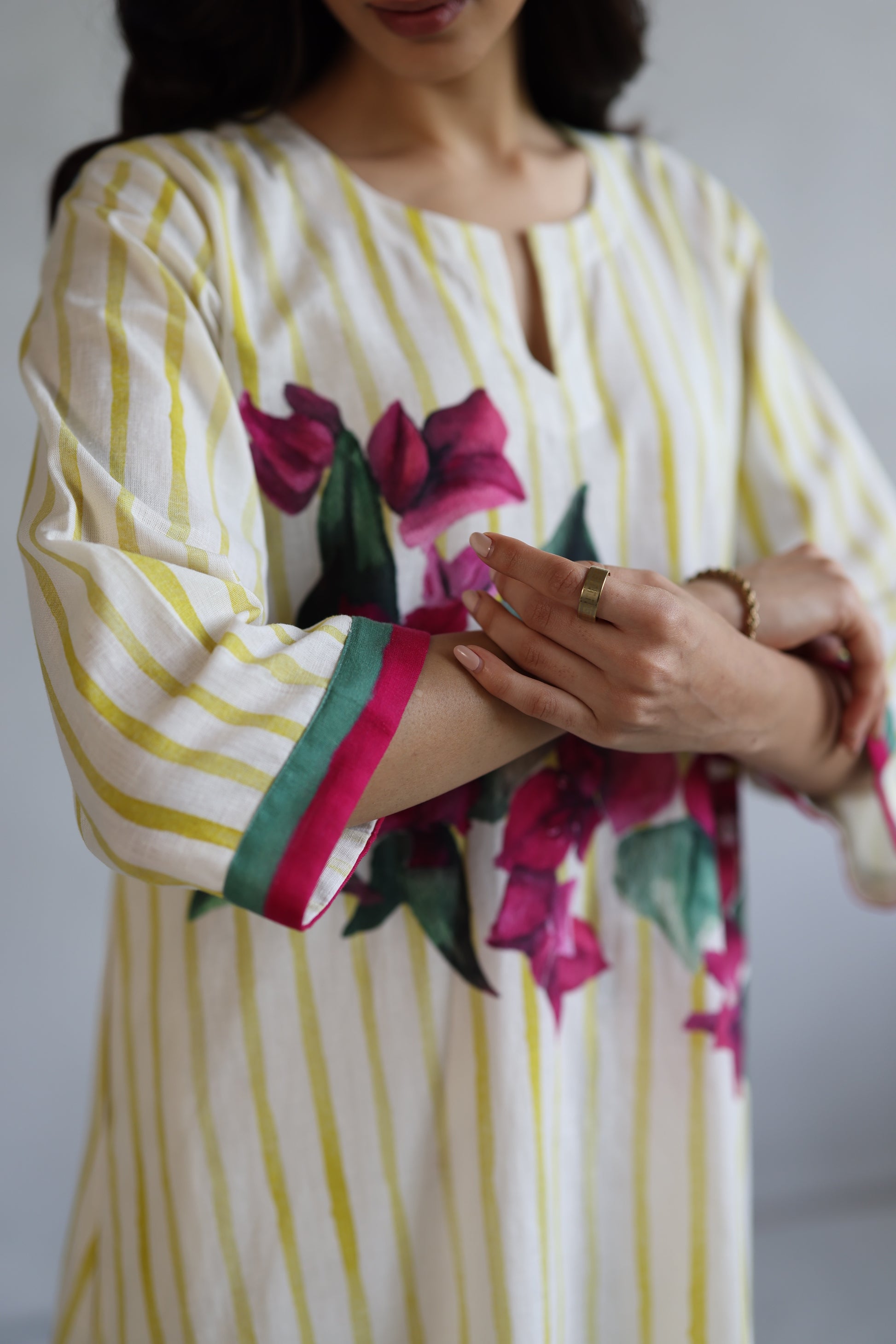 - Kindly choose relaxed measurements for a similar look as shown in the images.