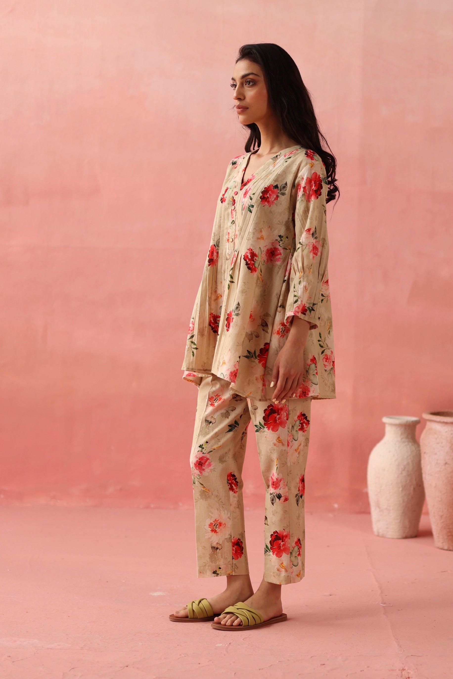 The linen luzern pant ensures a flattering and streamlined appearance; as a straight pant, it provides ease of movement and a relaxed feel. A mid-rise waistband provides a comfortable fit around the waist. The floral prints on it bring a sense of femininity and grace to it, making it a versatile choice to pair with our linen tops and tunics.