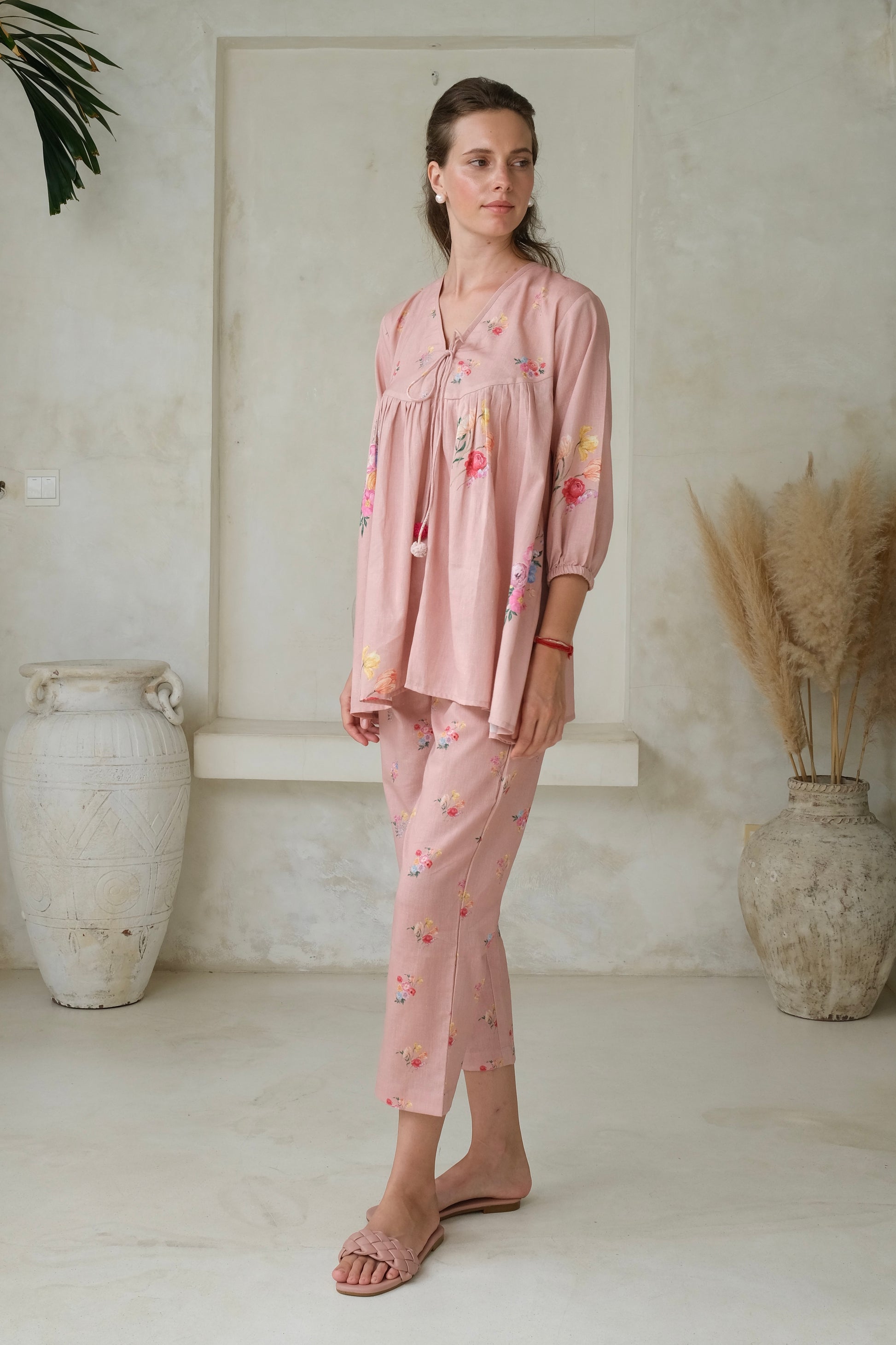 The rosita pants are a breezy pair to complement well with the rosita tunic and top. It features all-over dainty watercolor flowers in pastel hues, ideal for a light, airy, and effortlessly chic look!