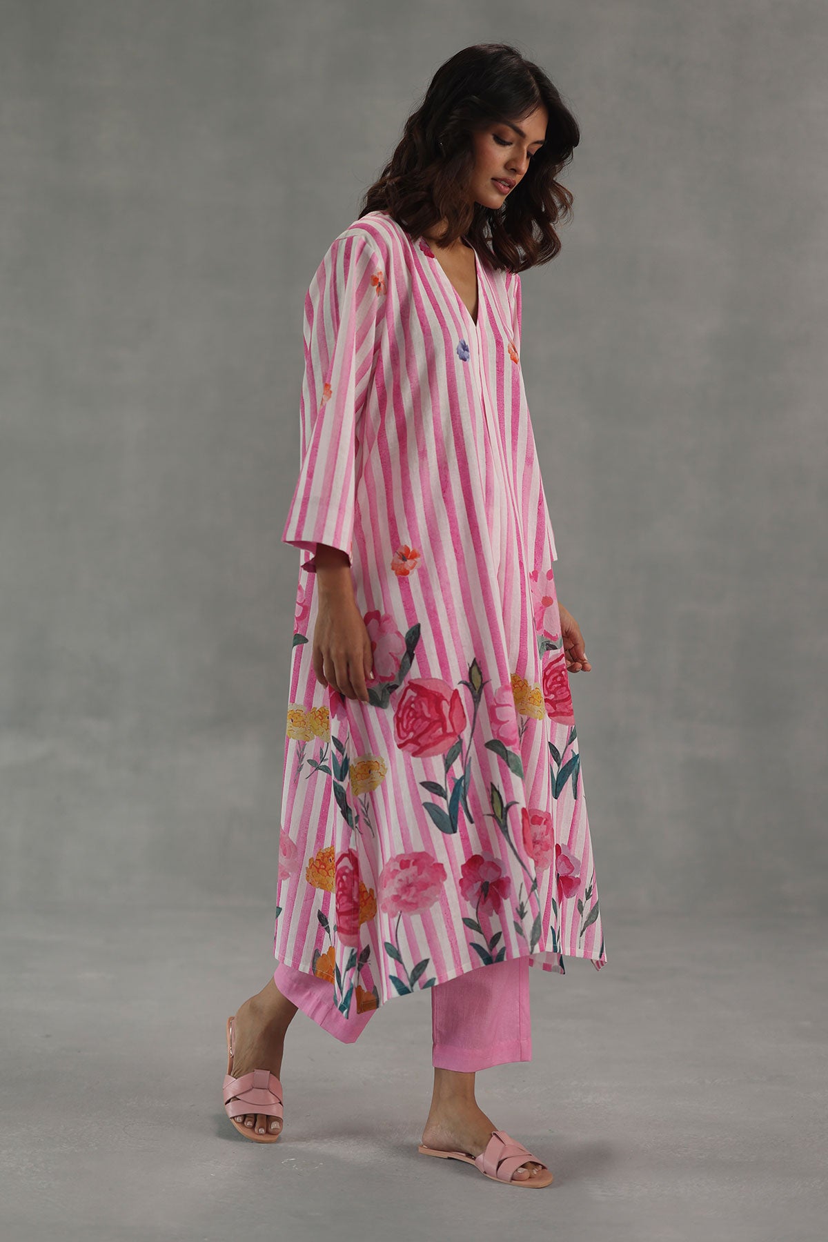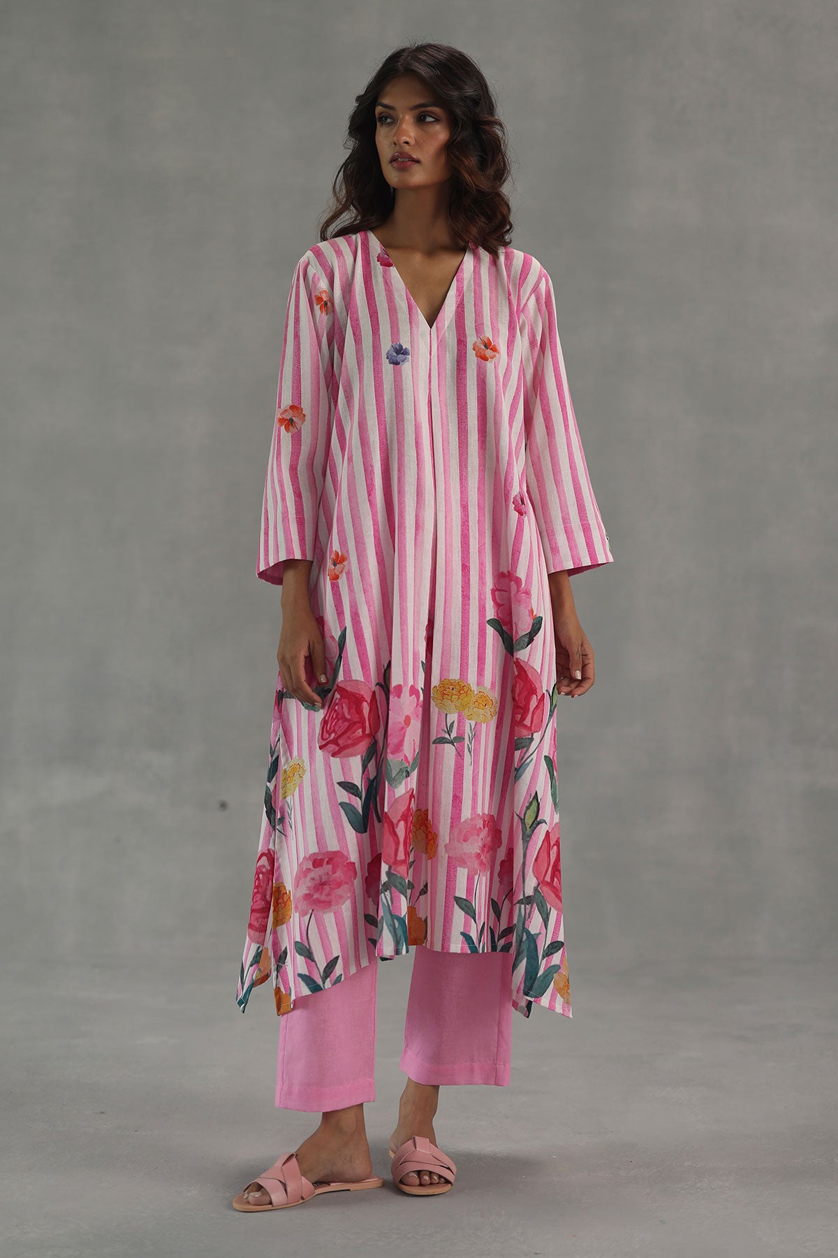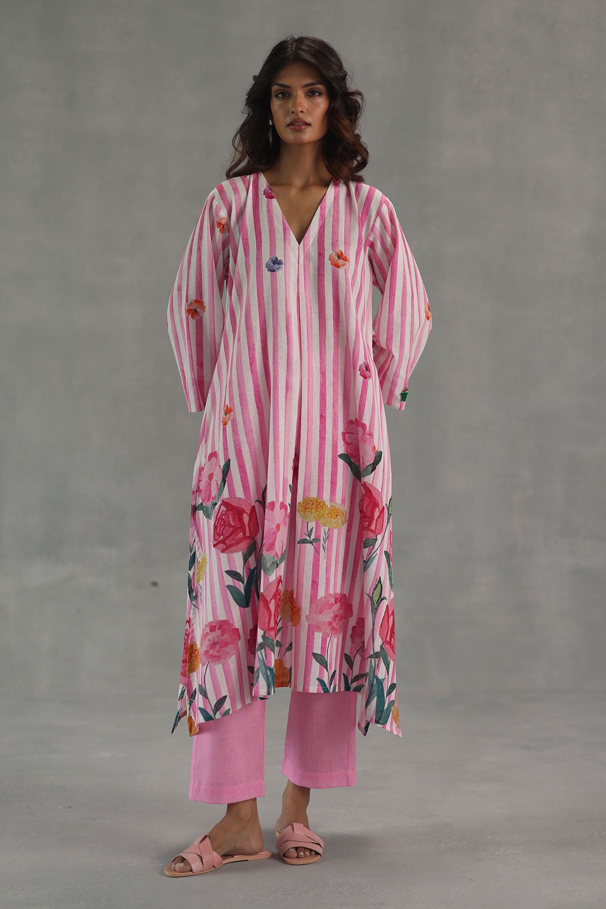Soft, elegant, and timeless, the willow kurta set features delicate watercolor florals scattered across the kurta and pants, with graceful floral vines blooming along the ghera. Designed in soothing tones, this set brings together comfort and quiet beauty, making it perfect for both everyday ease and intimate gatherings.