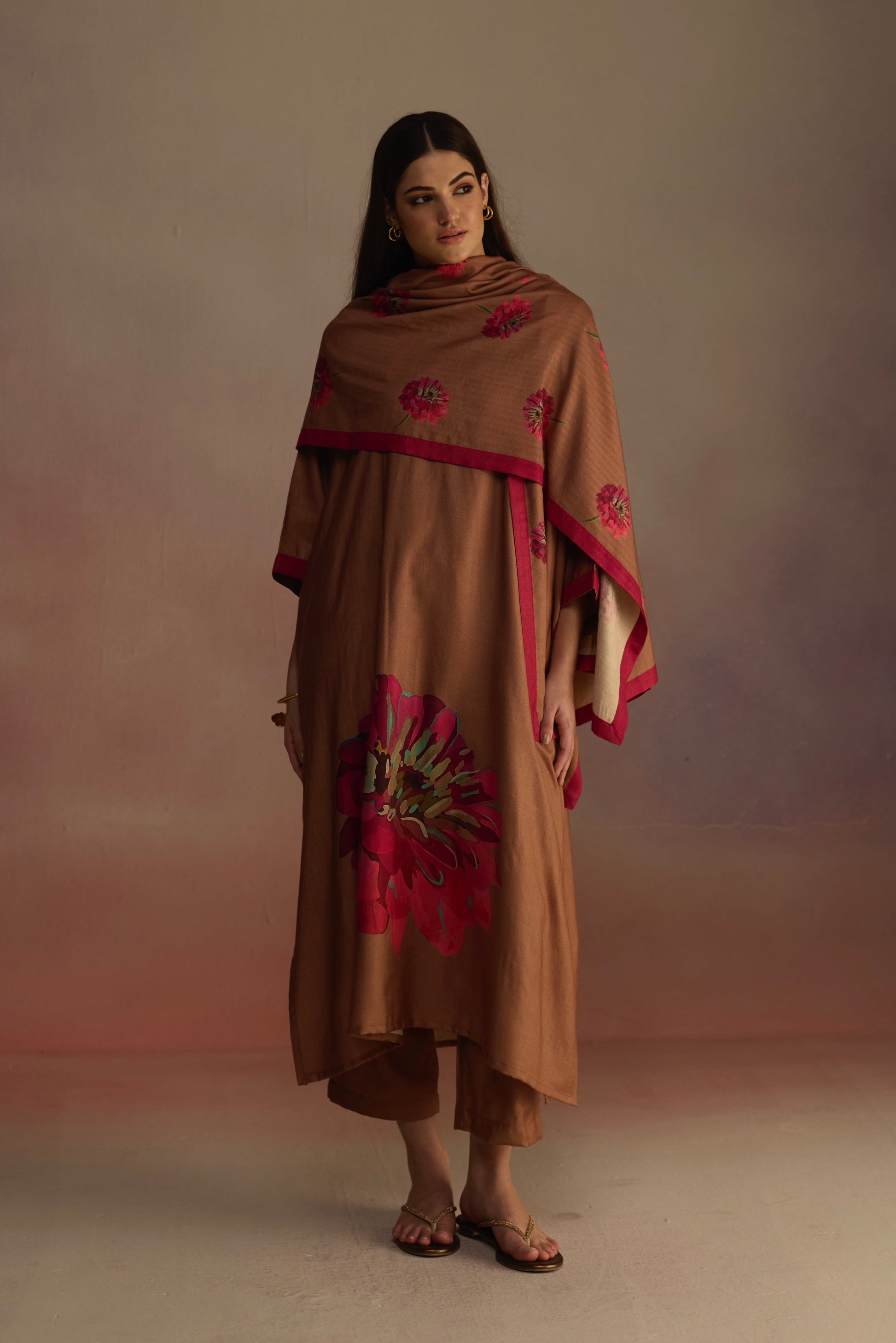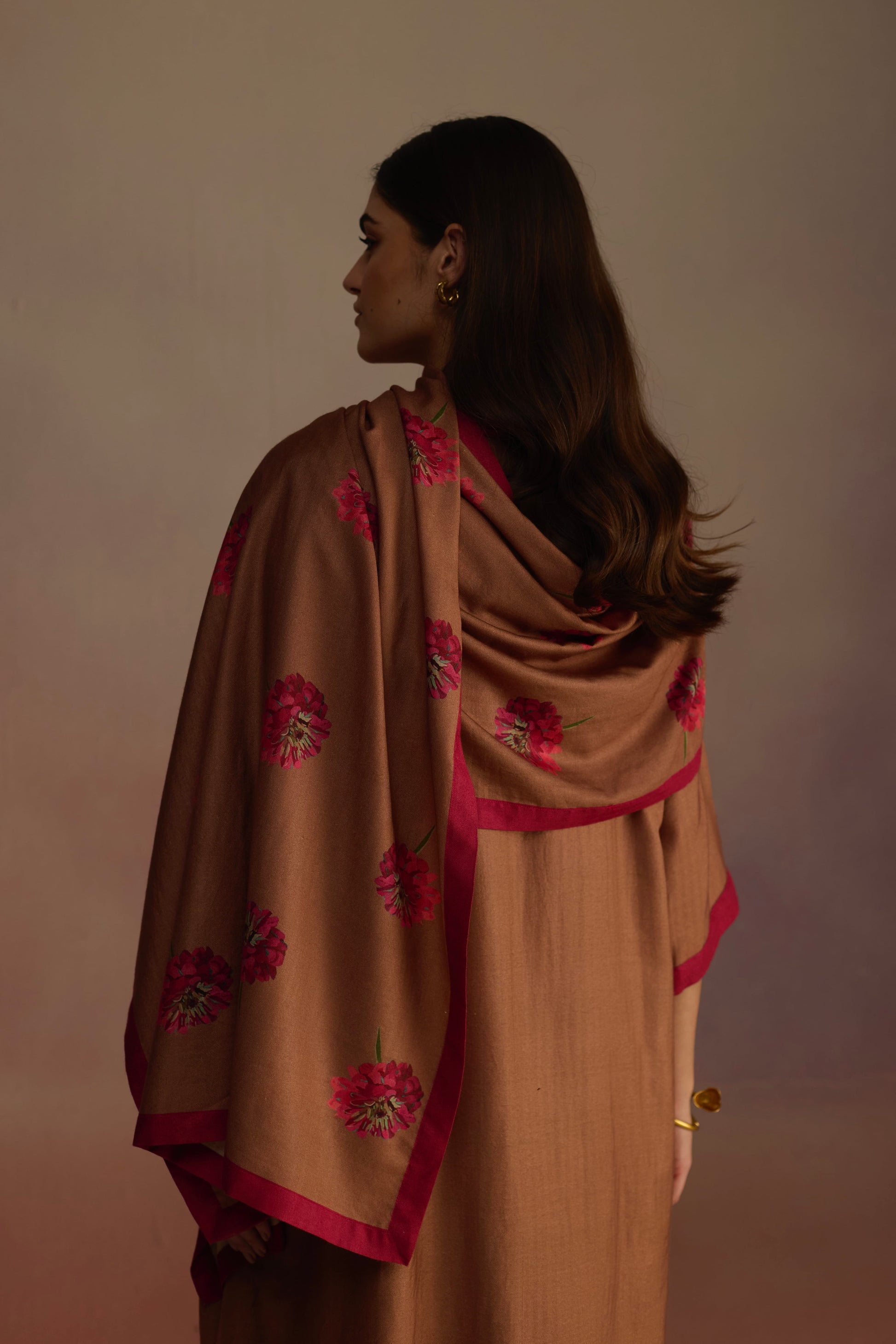 A winter essential, this stole features hand-drawn watercolor floral motifs and a contrasting color border, adding warmth and style to your look.